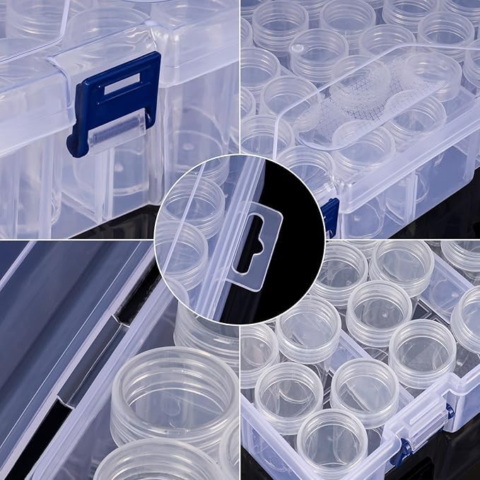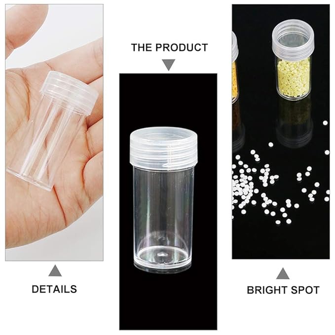 ✅ 24 ROUND BOTTLES WITH LIDS: Includes 24 transparent, spill-proof round bottles with secure screw-on lids. Keep your diamonds, beads, sequins, and glitter neatly sorted and safe from mixing!