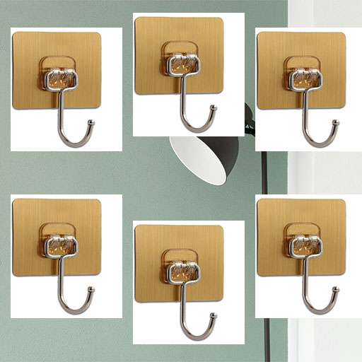 7*7 golden large hook sticker Wall Hooks Pack of - 6