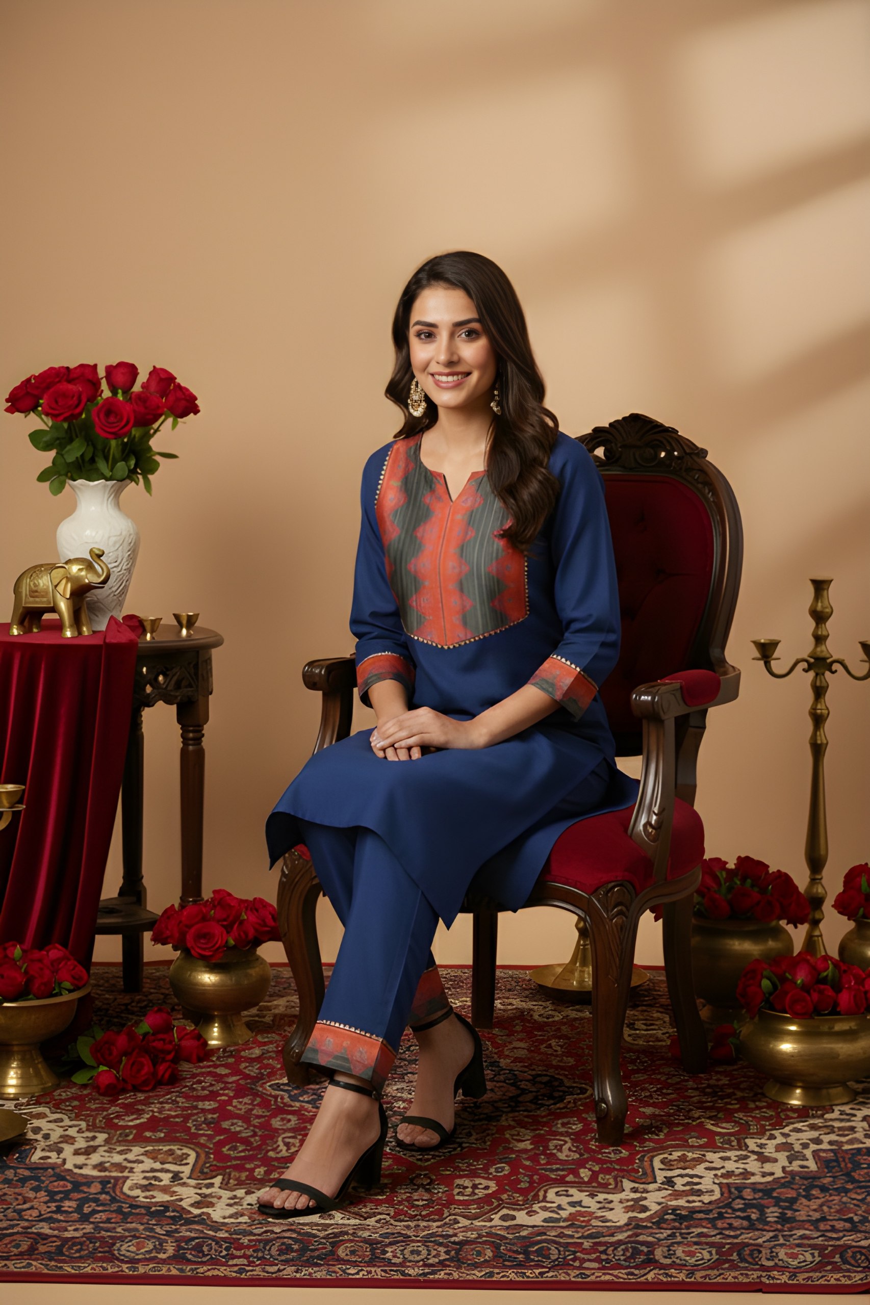 Blue Women Cotton Kurti Pant Set | Stylish Printed & Solid Ethnic Set for Women | Casual, Office & Daily Wear Kurta Set-Blue