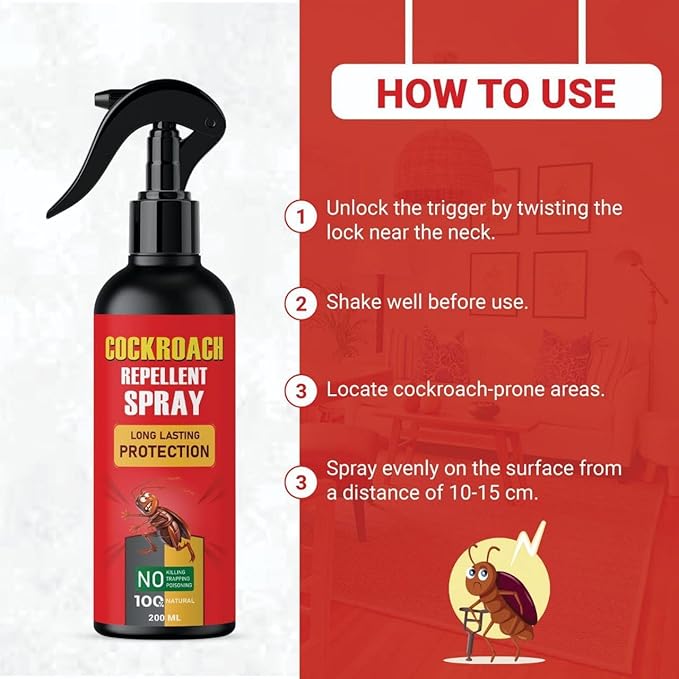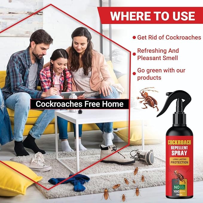 Chemical-Free Option: Cockroach Spray made from plant-based essential oils like peppermint, clove leaf, and tea tree oil, Permanent Cockroach Killer Spray is free of harmful chemicals and contaminants