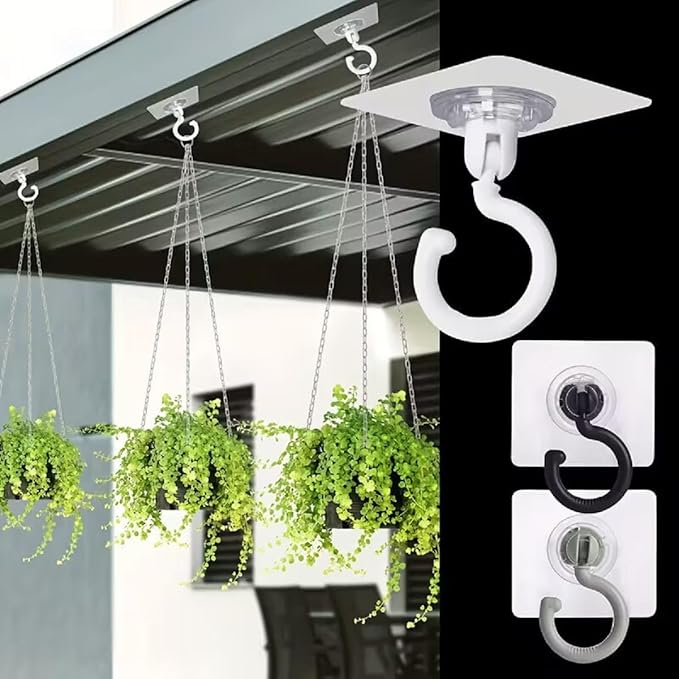 Mount anything securely overhead with these Heavy Duty 360° Rotating Ceiling Hooks. Featuring a no-drill, ultra-strong adhesive base, these hooks hold up to 5 lbs and install in seconds without damaging walls or ceilings. The full 360° rotation allows you to easily position and adjust hanging items like wind chimes, hanging plants, lanterns, and holiday decor. Perfect for indoor or outdoor use in kitchens, bathrooms, patios, and balconies. Removable and reusable, these versatile hooks are ideal for renters and anyone seeking a damage-free, heavy-duty hanging solution.
