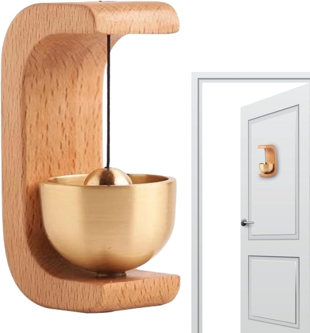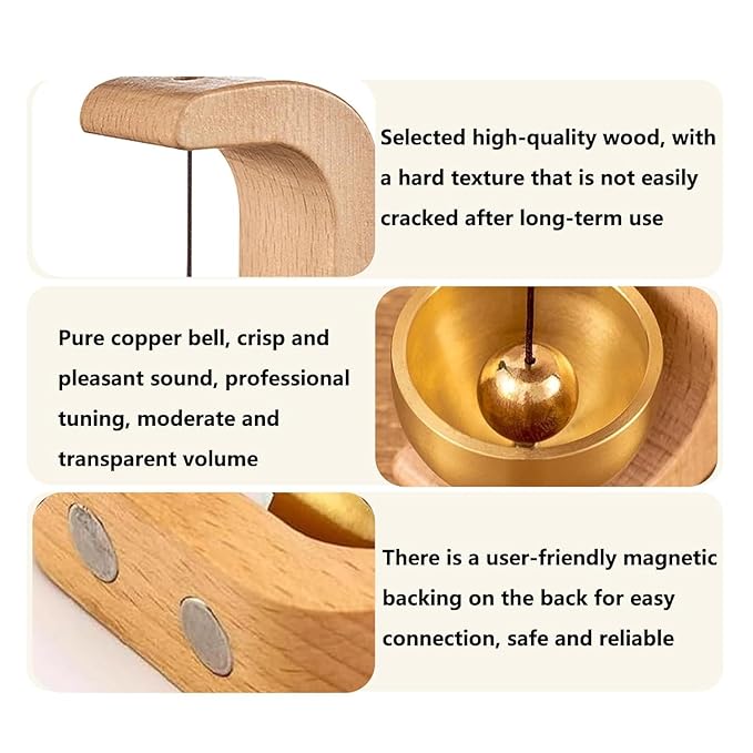 This elegant wooden doorbell features a magnetic chime that rings gently when the door opens. Ideal for small doors, creating a welcoming sound in your home or shop.