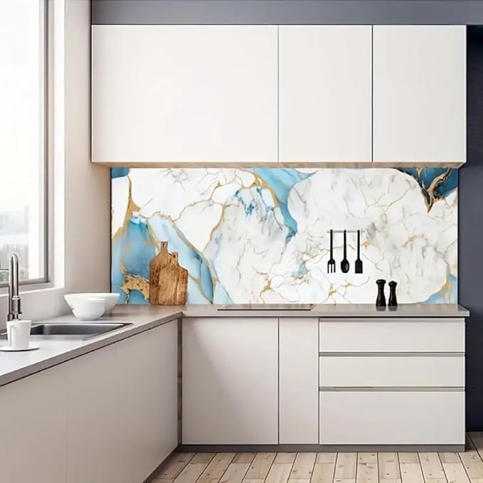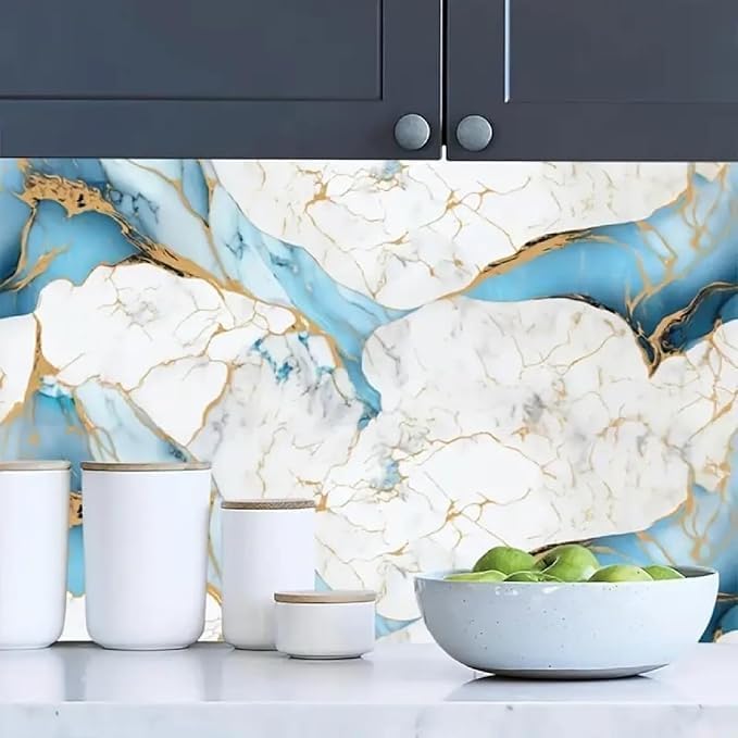 Marble Foil Wallpaper – Self Adhesive Aluminum Sticker – Waterproof Peel and Stick Wall Paper – 60x200cm – Decorative Foil for Kitchen, Bedroom, Living Room, Office