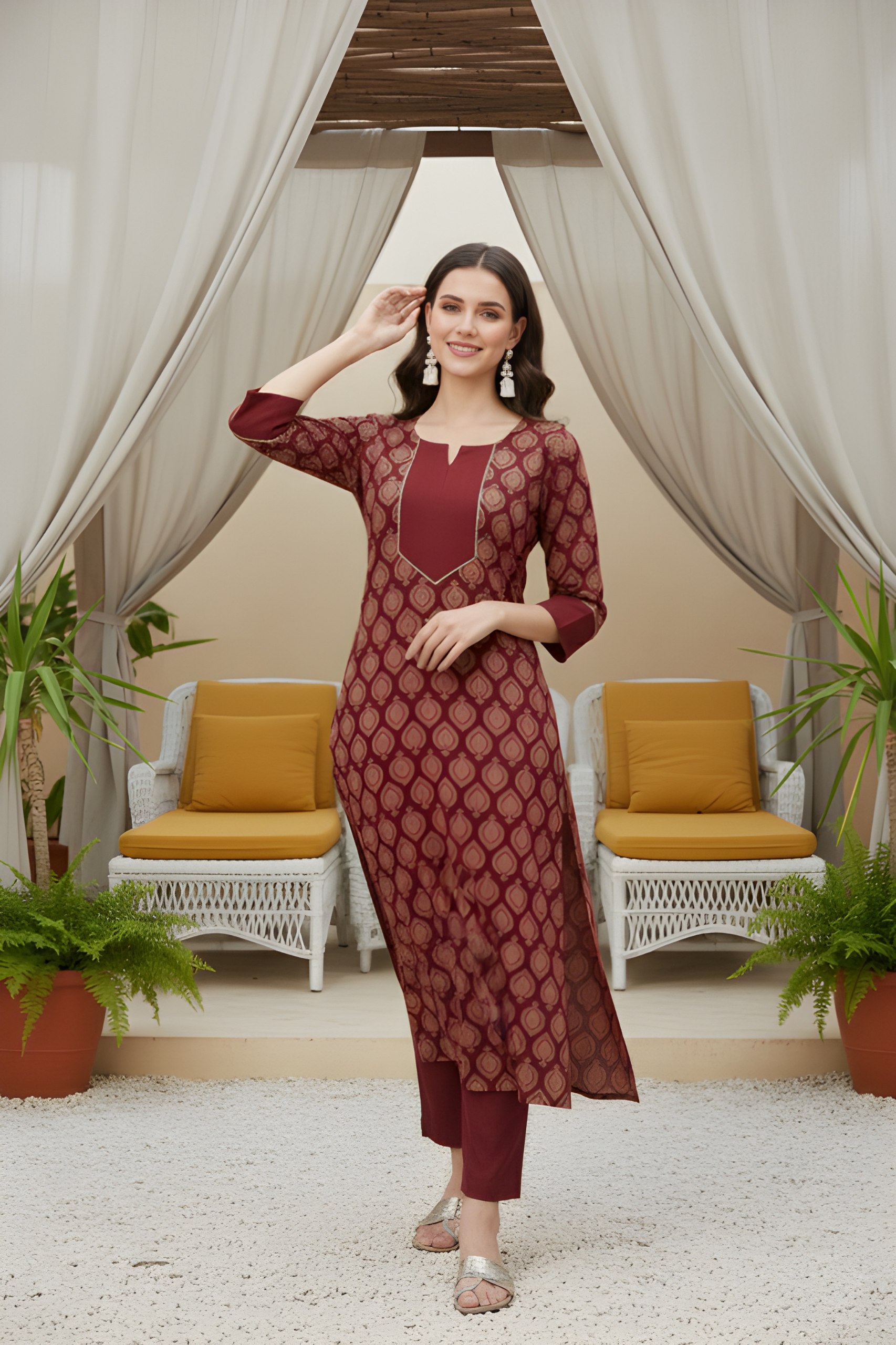Upgrade your wardrobe with this stylish and comfortable women’s kurti, designed to offer the perfect blend of fashion and comforts. Made from high-quality fabric, this kurti is soft, breathable, and ideal for all-day wear. Whether you're heading to the office, attending a casual outing, or looking for daily wear, this kurti is a perfect choice. Featuring a trendy design with a flattering fit, this kurti enhances your overall look while keeping you comfortable. It can be easily paired with leggings, palazzos, jeans, or pants to create a versatile and fashionable outfit for any occasion.This latest kurti design for women is perfect for those who love modern style with traditional elegance. Suitable for daily wear, office wear, college wear, festive occasions, and casual outings.