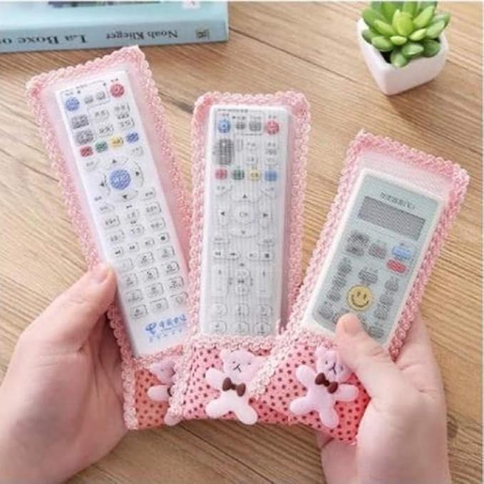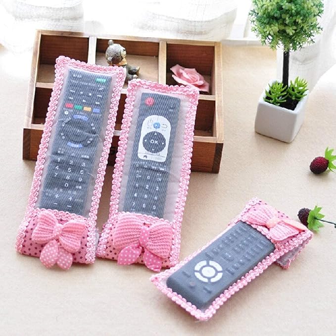 Universal Fit for All Remotes: Includes 3 covers in different sizes—perfect for TV, AC, DTH, D2H, and home theatre remote controlsStylish Bow Knot Lace Design: Enhances your home décor while keeping remotes safe from dust and scratches.Dustproof & Washable Fabric: Made from soft cloth and net fabric that's easy to clean and long-lasting.