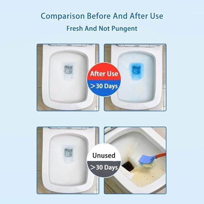 Automatic Flush Toilet Bowl Cleaner Tablets. These powerful cleaning balls release deep-cleaning bubbles with every flush to remove stains, limescale, and bacteria. Designed to last up to 300 flushes, they provide long-lasting freshness and convenience. The mild lemon fragrance leaves your bathroom smelling clean and refreshing. Simply drop a tablet into the toilet tank and enjoy effortless, continuous cleaning for weeks.