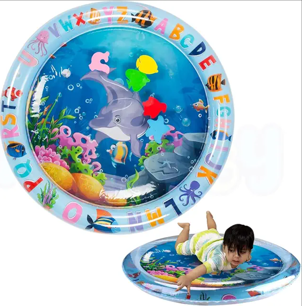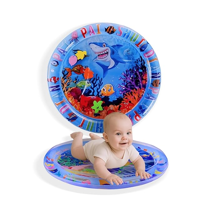 Round Baby Water Play Mat Baby Kids Circle Water Play Mat Toys Inflatable Tummy Time Leakproof Water Play Mat, Fun Activity Play Center Indoor and Outdoor Water Play Mat for Baby, Pack of 1, Multicolour