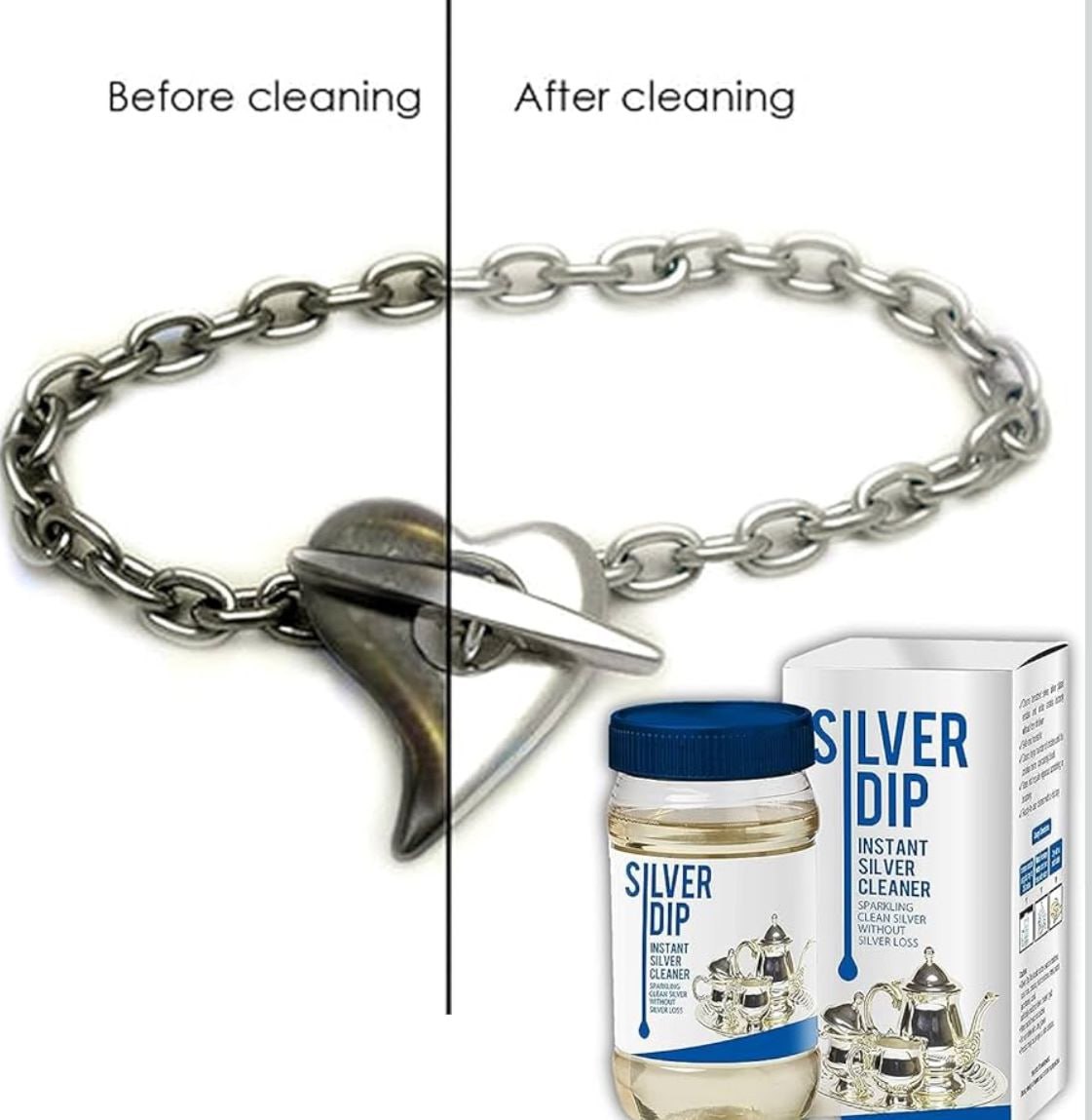 BEFORE-AFTER RESULTS: Transforms tarnished and darkened silver items back to their original lustrous finish with a simple dip treatment