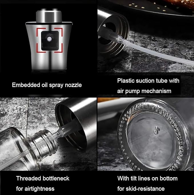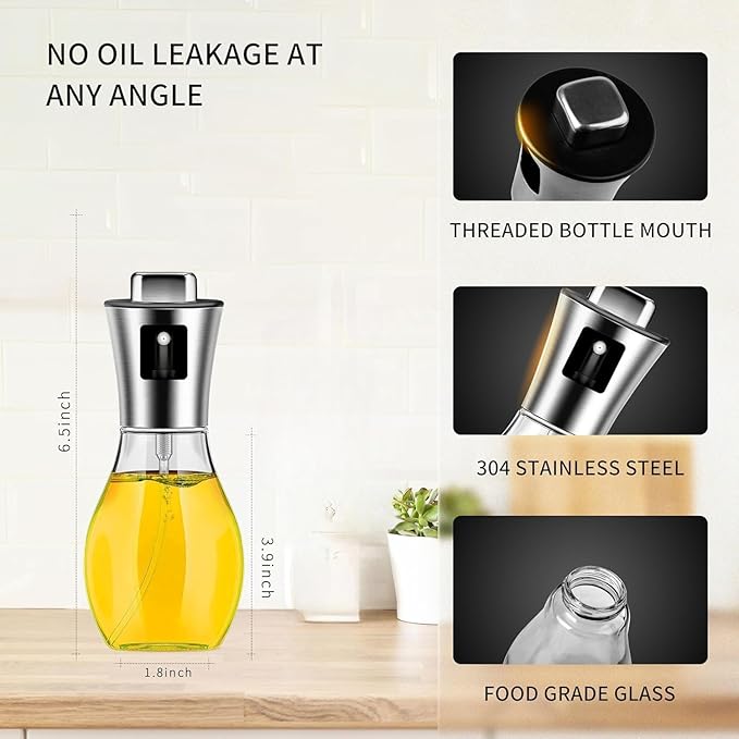 Stainless Steel and bar Glass Spray Oil Dispenser Bottle for Cooking ,Oil Sprayer Bottle for Cooking