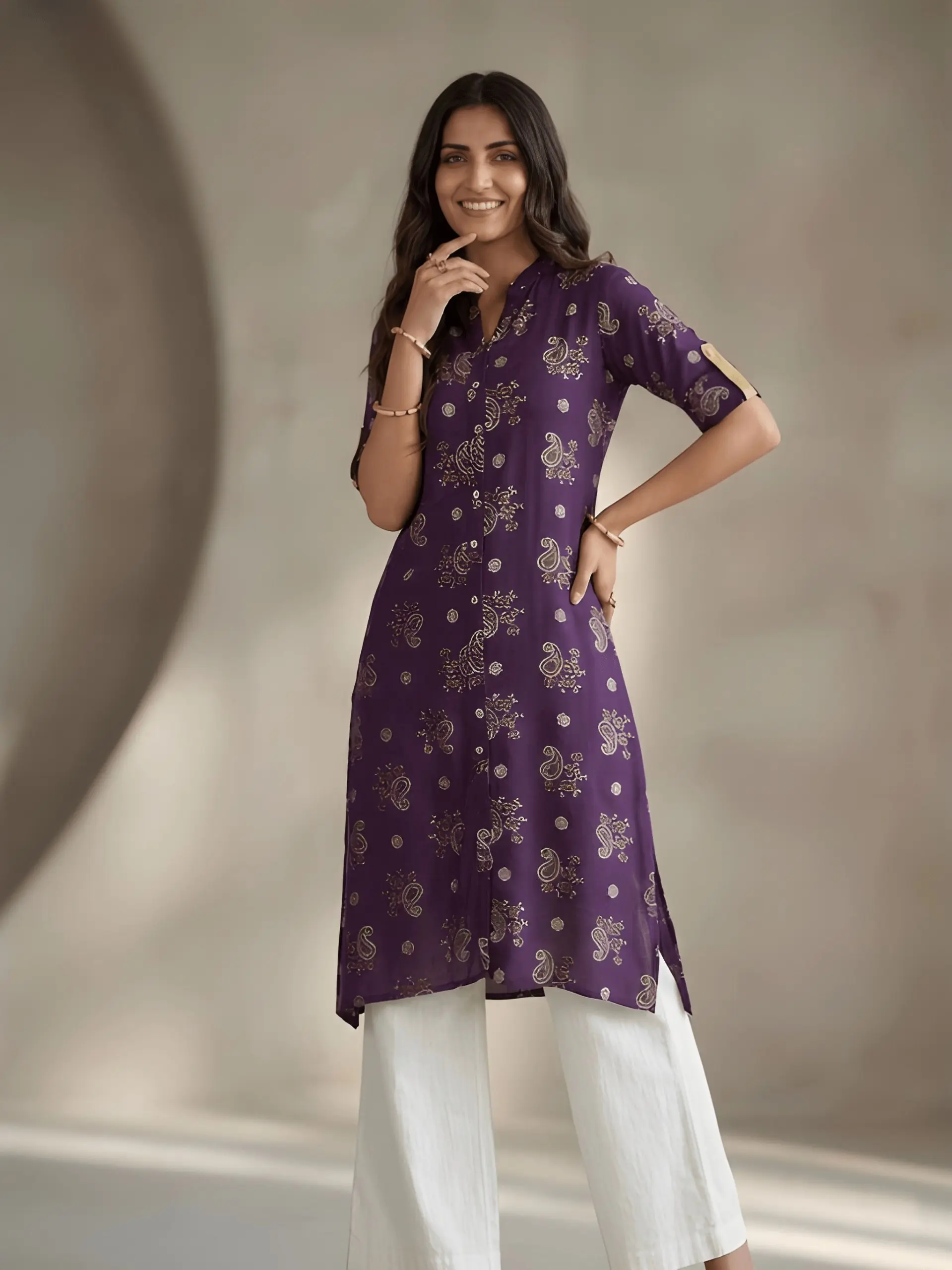 Look effortlessly stylish with this Navy Blue Flared Kurti Dress for Women, made from premium rayon fabric for all-day comfort. The elegant V-neck design combined with a solid pattern gives a sophisticated and modern appearance. Perfect for daily wear, office, or casual outings.