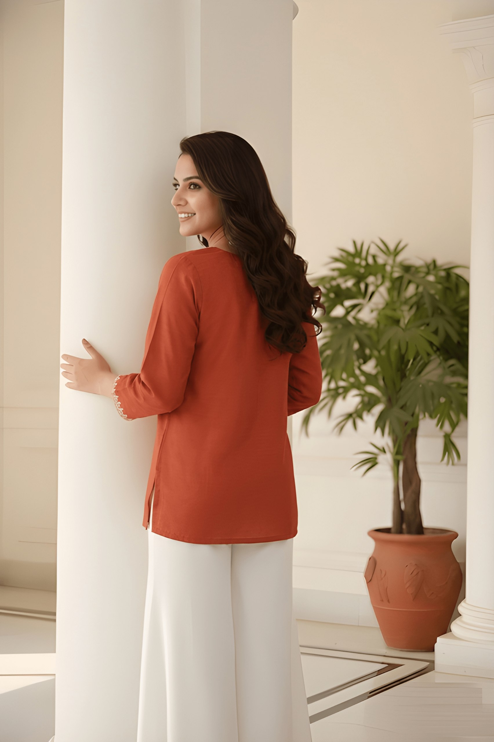 Women Rust Orange Roman Silk Tunic Top | Casual Stylish Tunic for Women | Soft Fabric Daily & Office Wear