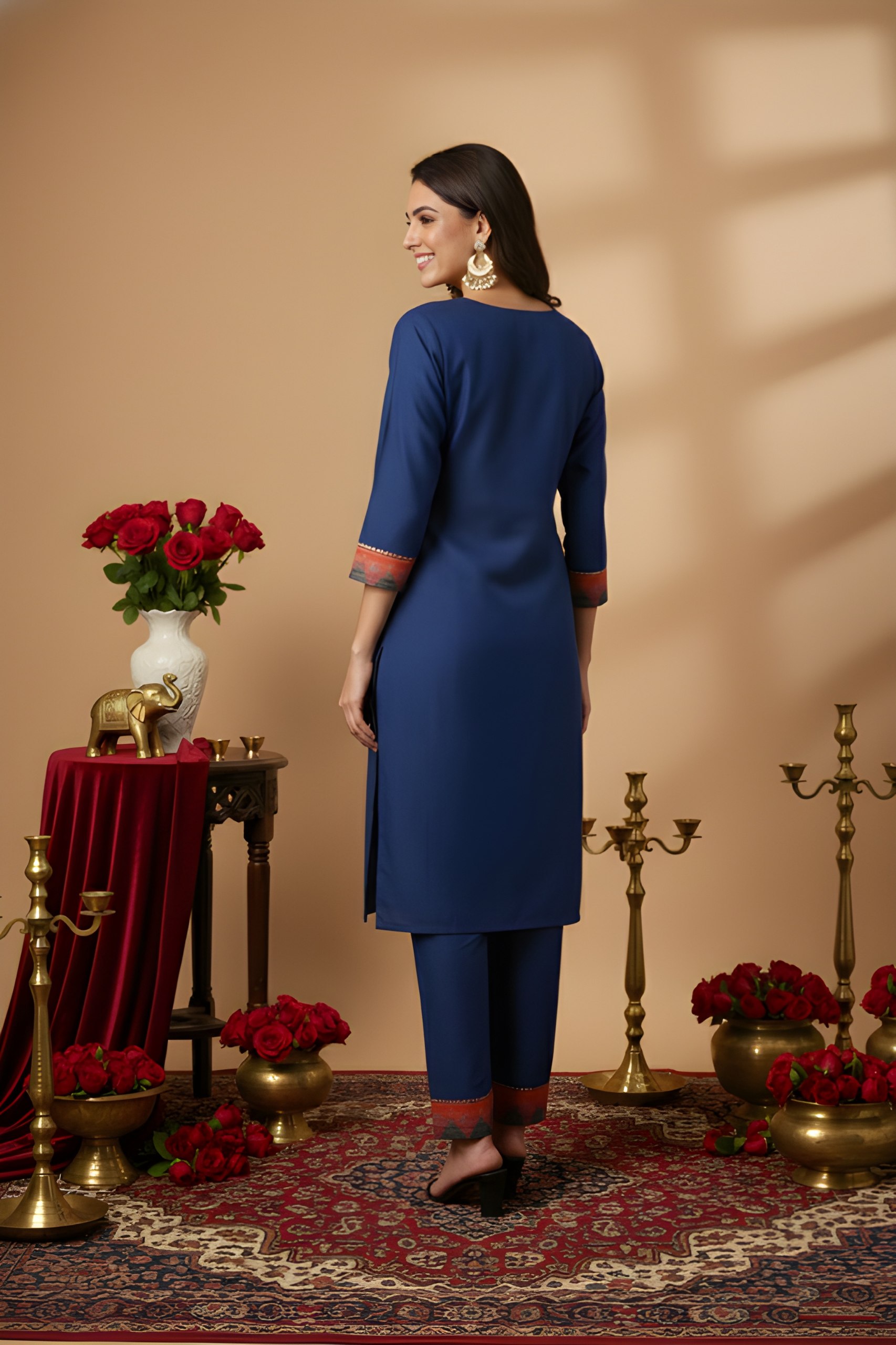 Blue Women Cotton Kurti Pant Set | Stylish Printed & Solid Ethnic Set for Women | Casual, Office & Daily Wear Kurta Set-Blue