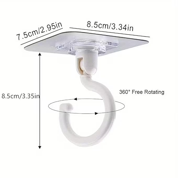 Mount anything securely overhead with these Heavy Duty 360° Rotating Ceiling Hooks. Featuring a no-drill, ultra-strong adhesive base, these hooks hold up to 5 lbs and install in seconds without damaging walls or ceilings. The full 360° rotation allows you to easily position and adjust hanging items like wind chimes, hanging plants, lanterns, and holiday decor. Perfect for indoor or outdoor use in kitchens, bathrooms, patios, and balconies. Removable and reusable, these versatile hooks are ideal for renters and anyone seeking a damage-free, heavy-duty hanging solution.