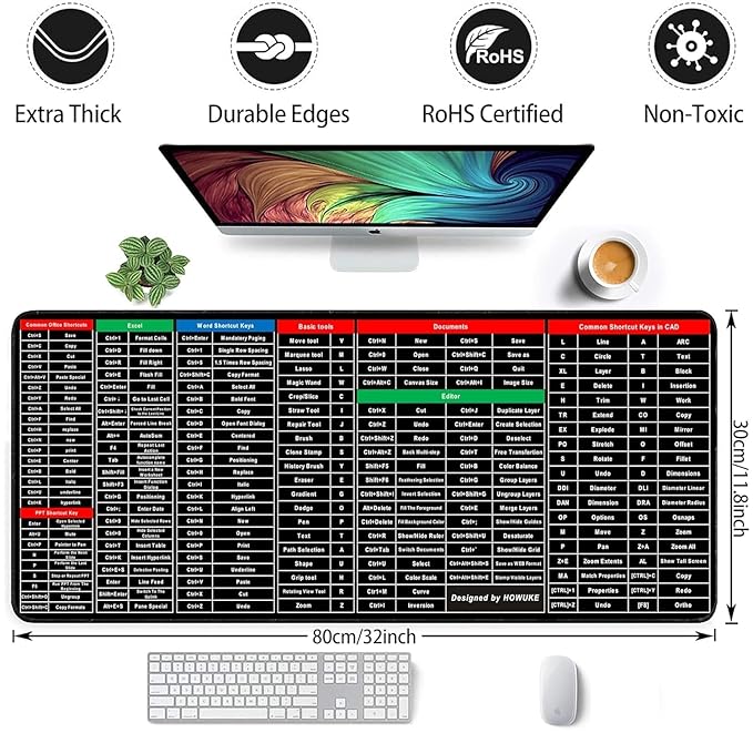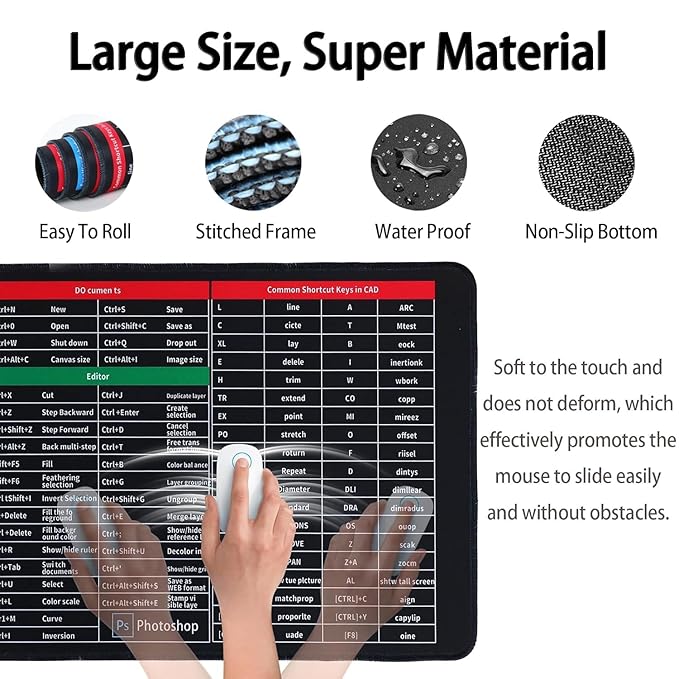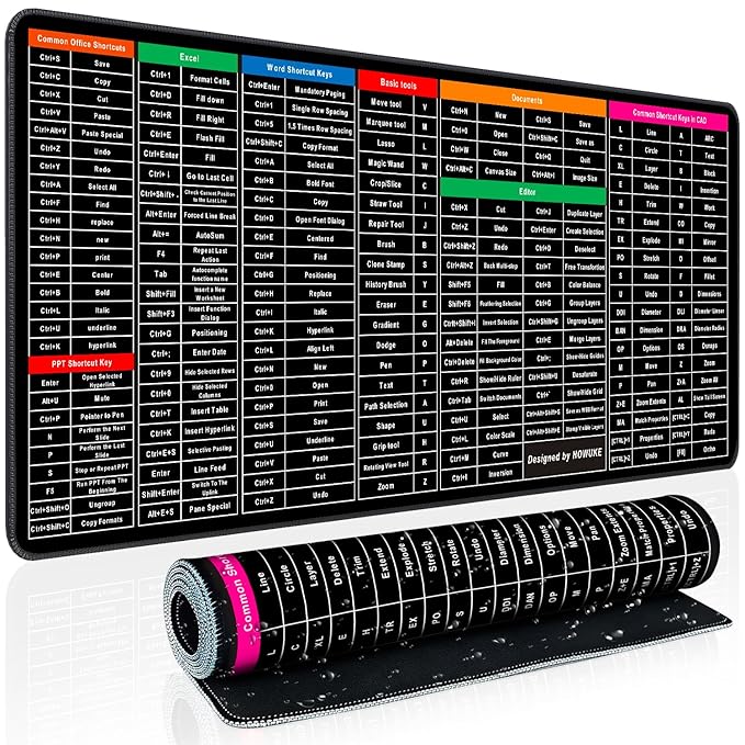 Mouse Pad Keyboard Shortcuts Anti-Slip Pad with Office Excel Microsoft Shortcuts Key Patterns Mouse Pad