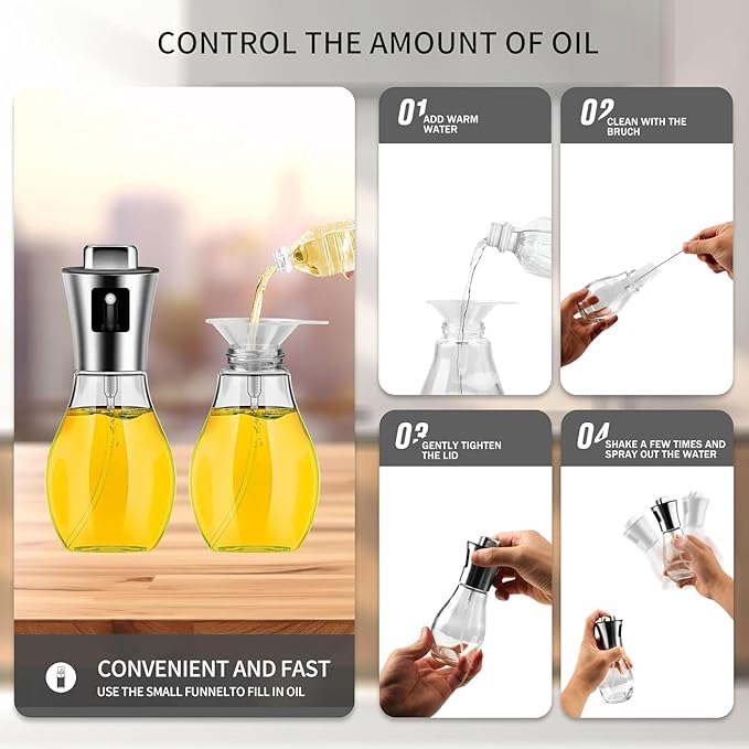Stainless Steel and bar Glass Spray Oil Dispenser Bottle for Cooking ,Oil Sprayer Bottle for Cooking